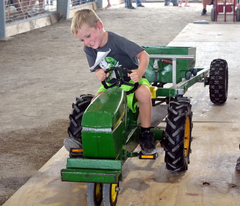 PAOLA – Young contestants grimaced, grunted and gritted their teeth as they dug down deep for a little more pedal power during the annual Kiddie Tractor Pull at the Miami County Fair.