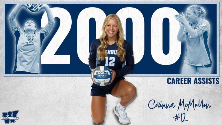TOPKEA - Corinna McMullen was honored by the Washburn University volleyball team for topping 2,000 career assists this season.
