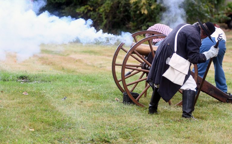 Soldiers fire off a cannon during the Battle of New Georgia at the Freedom Festival in John Brown Memorial Park on Saturday, Sept. 21. For more Freedom Festival coverage, see Page B8.Gene Morris / Miami County Republic