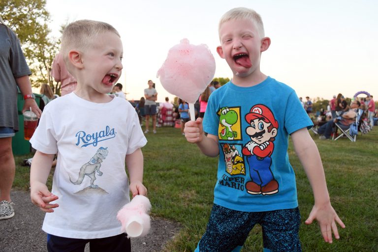 Hunter (left) and his brother, Cooper Hall, of Louisburg enjoy some cotton candy while celebrating America at last year’s Freedom Fest at Lewis-Young Park in Louisburg.Gene Morris / Miami County Republic