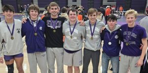 Members of the Osawatomie Trojans basketball team pose for pictures after winning the Linn County Invitational. Osawatomie defeated Prairie View, Jayhawk-Linn and Pleasanton to claim the title.Submitted Photo
