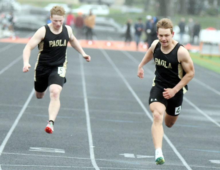 Sasha Pichnenko of Paola darts to the gold in the 100-meter dash during the Baldwin Invitational on Friday, April 4. He also won the 200-meter dash.Gene Morris / Miami County Republic